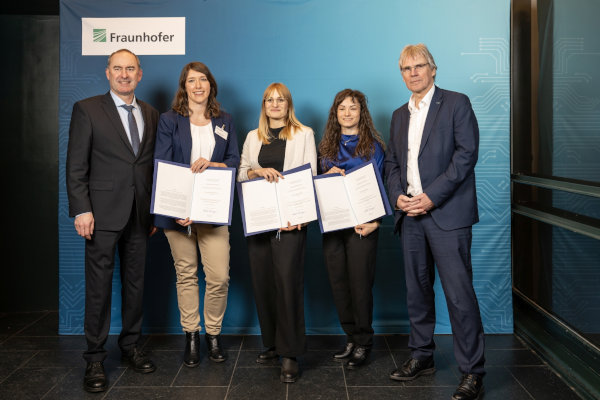 Prof. Holger Hanselka, President of the Fraunhofer-Gesellschaft, highlighted the award winners’ achievements: “To strengthen the economic success and competitiveness of Germany and Europe, we partner with companies to transform original ideas and scientific findings into innovations. This transfer approach, combined with scientific excellence and entrepreneurial thinking, is the central theme at the Fraunhofer-Gesellschaft, a common thread that runs through all of the prize winners’ outstanding doctoral projects. I warmly congratulate Dr. Kerstin Müller, Dr. Patricia Erhard and Dr. Sarah Klein on their outstanding achievements!”